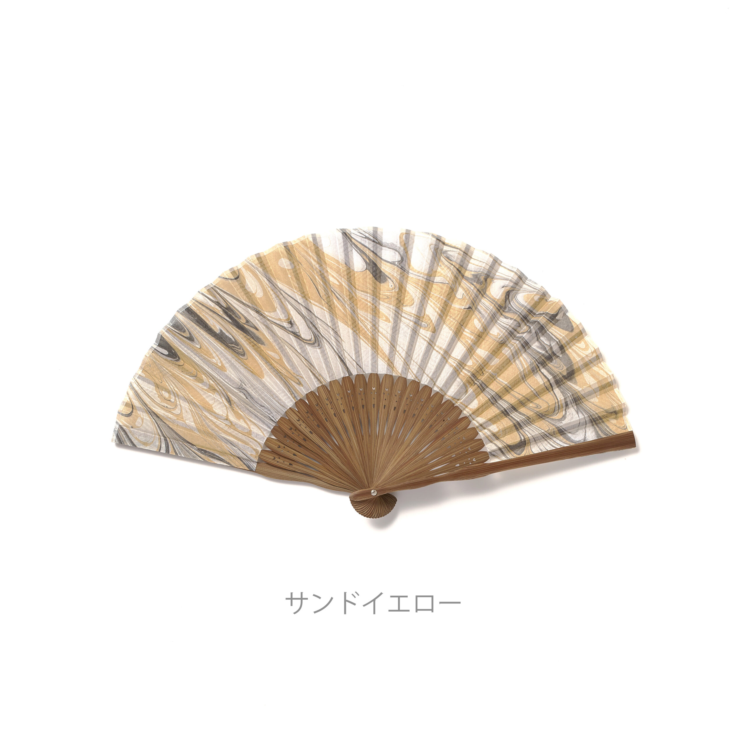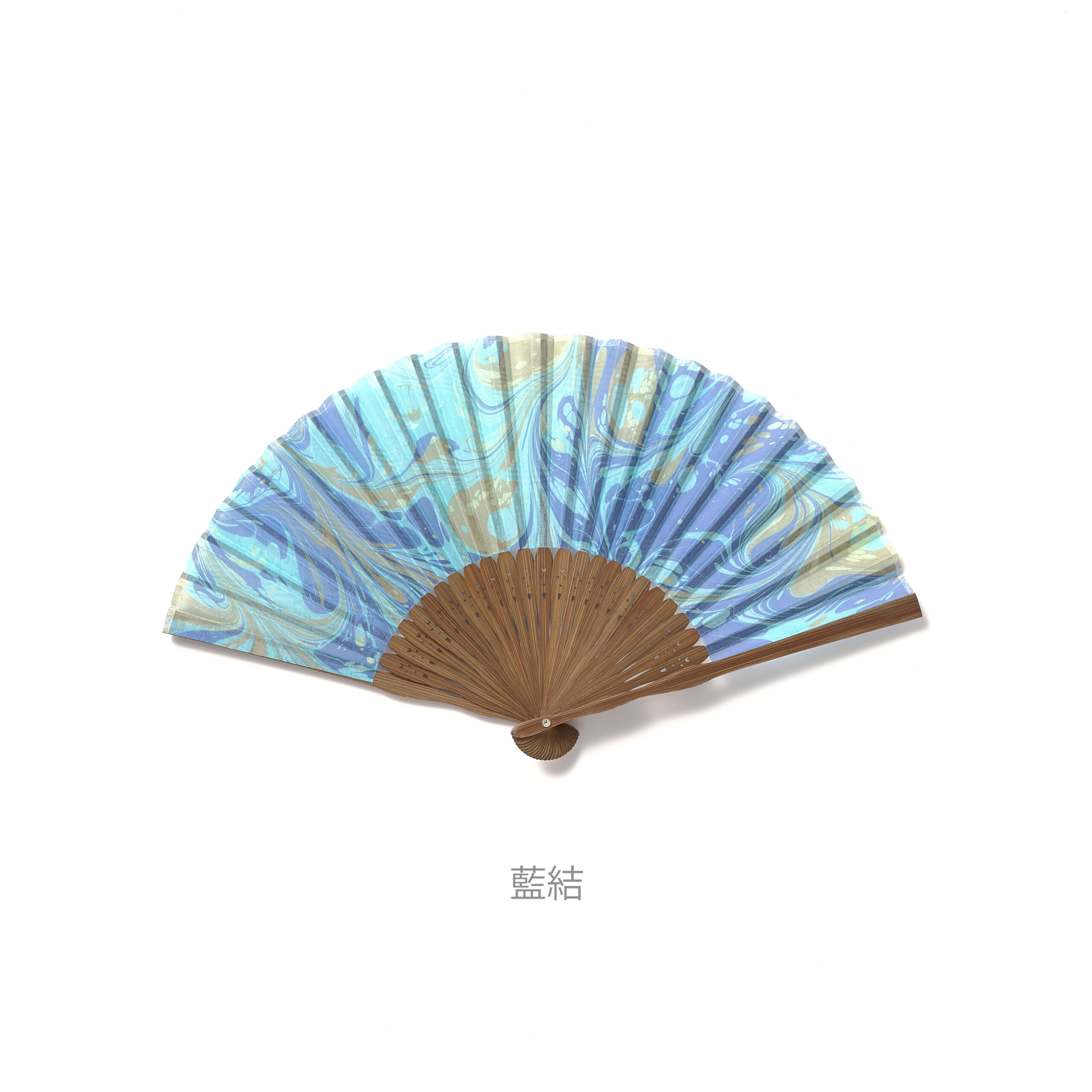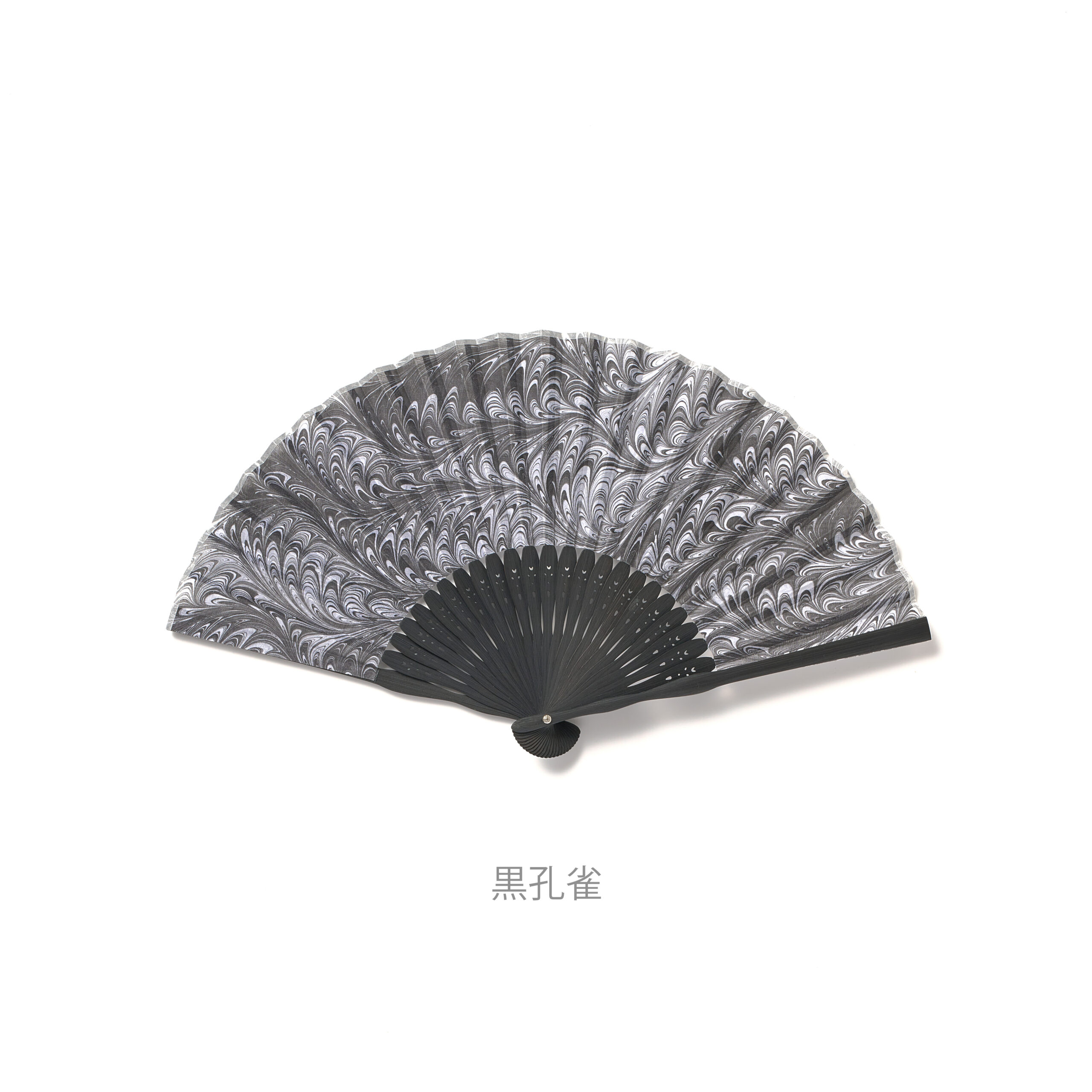 水の上に墨を浮かべ、その模様を生地に写し取るように染める「墨流し染め」の技法を使った扇子です。扇子と同じ柄の扇子ケースも付属。ひとつずつ丁寧に手染めをしているからこそ生まれる、色や柄をお楽しみいただけます。