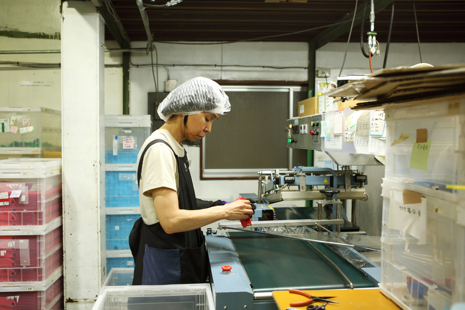 実際の生産工程を見せてもらった。工場に足を踏み入れると、規則正しい機械音が響いている。作業中にもかかわらず、来客に気づくと手を止め、明るく挨拶してくれる社員やパートの方々の表情が印象的だ。