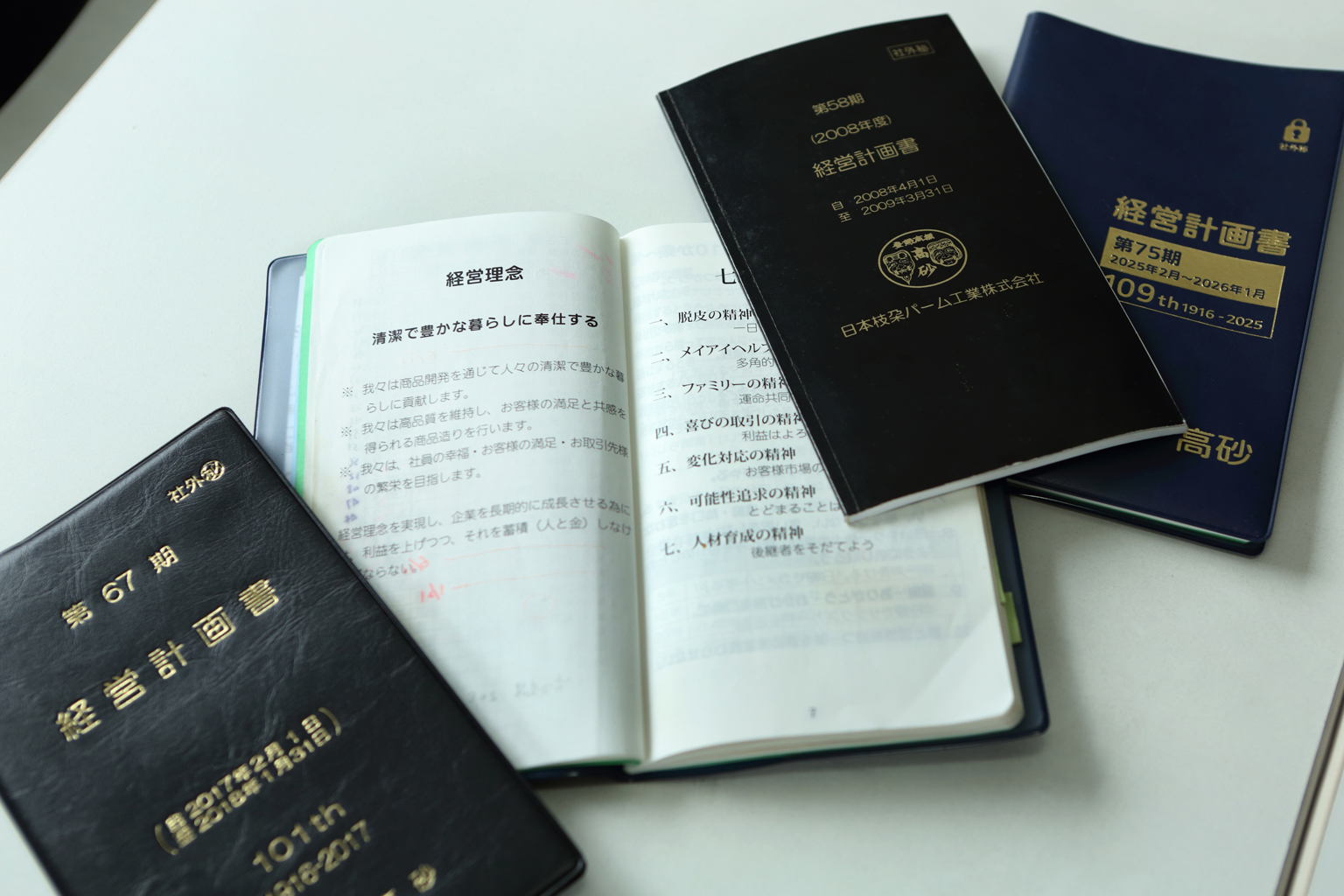 2007年から18年間、毎年、社員に配布している「経営計画書」。全社員が毎朝この計画書を読み上げ、理念を共有する積み重ねが組織の強さを生んでいる。