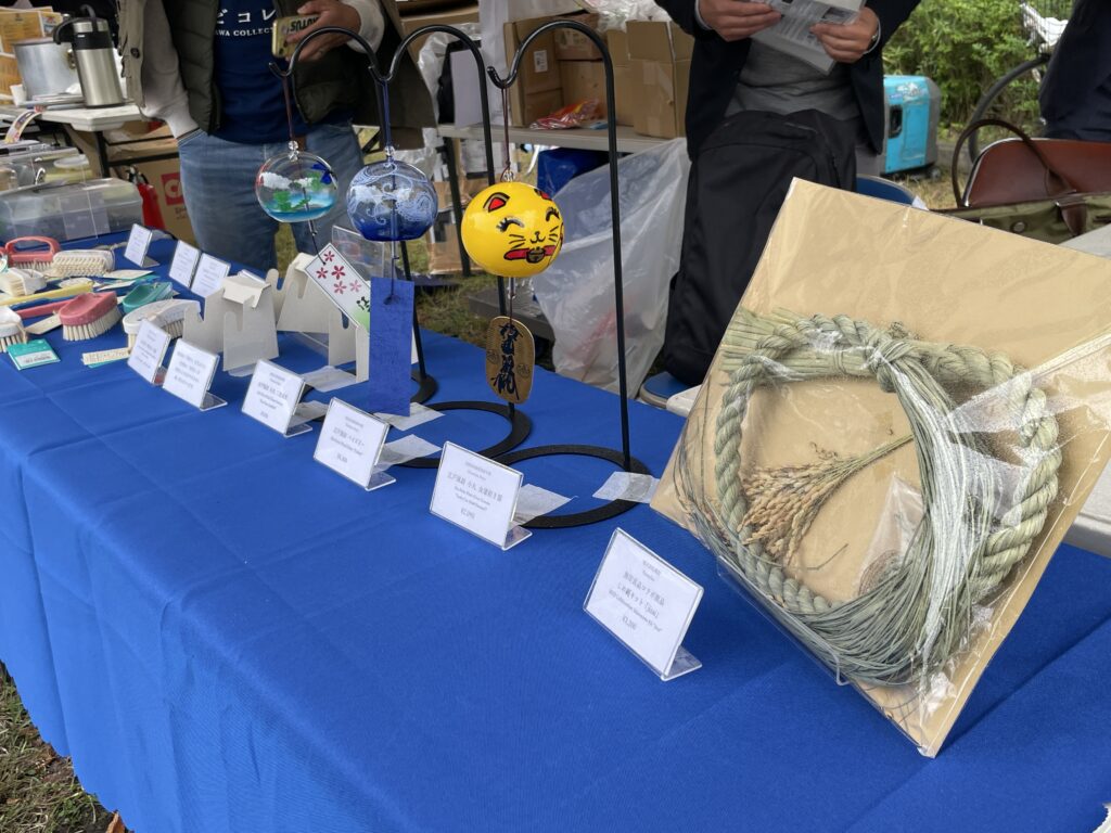 夏が終わっても、篠原風鈴本舗の風鈴はまだまだ人目を引いていました。日本文化の色彩が強い、縄忠のしめ縄キットに興味津々の人も。