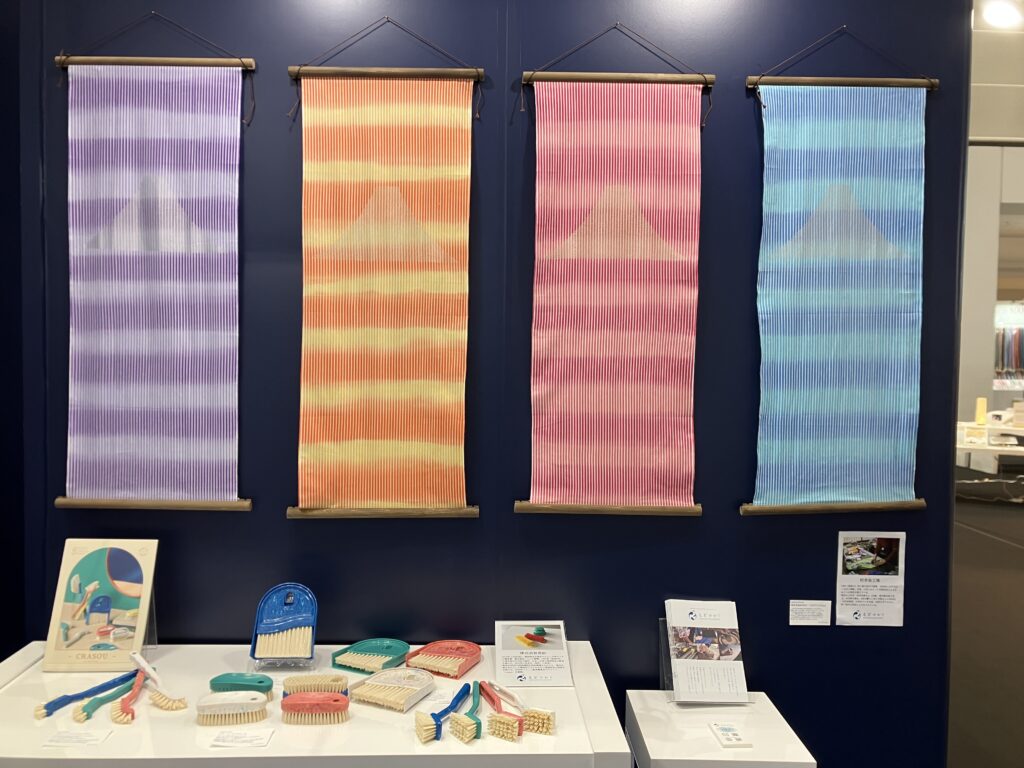 えどコレ!では初出展となる、株式会社高砂のブラシ4種類と村井染工場の手ぬぐい4種。