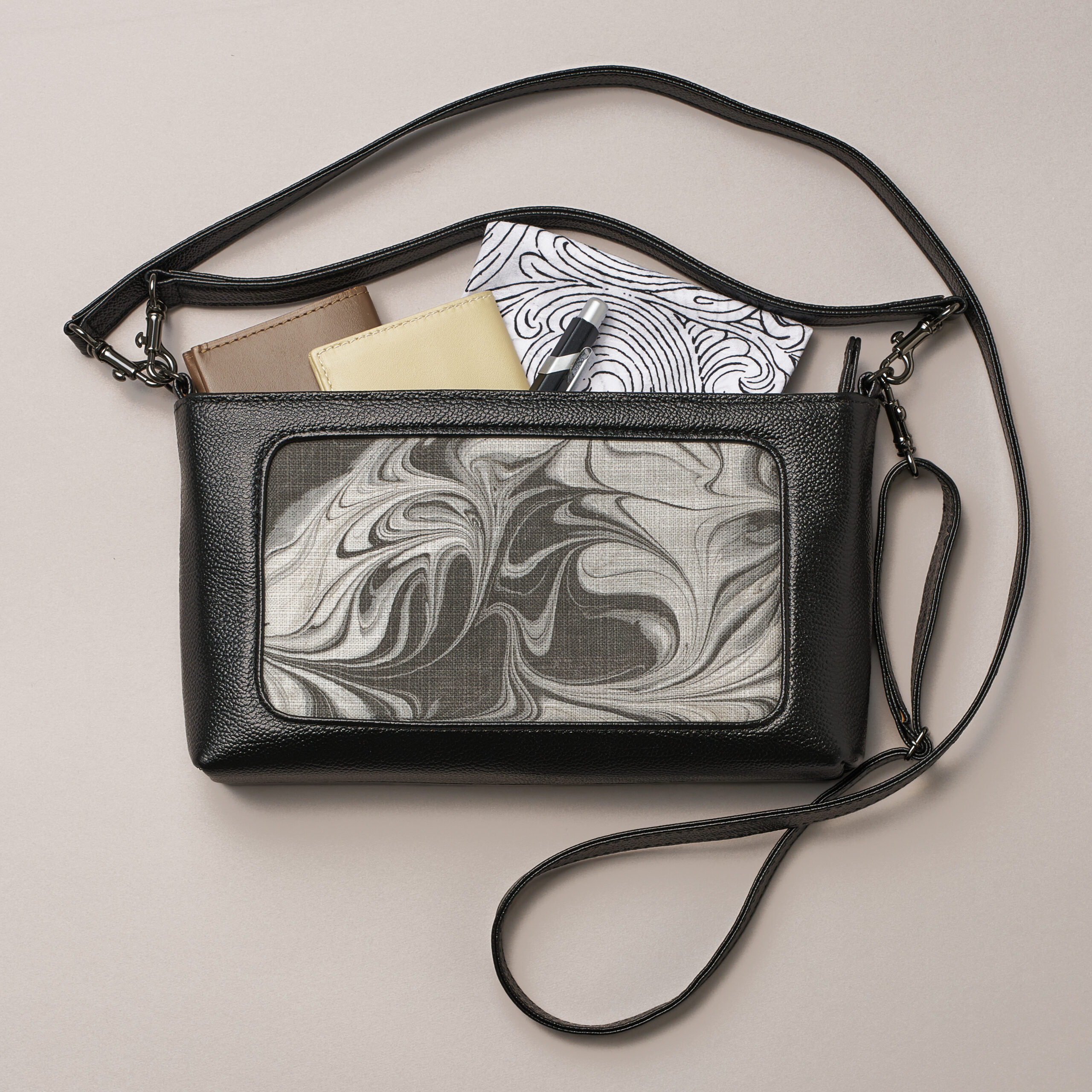 墨流し染め革バッグ